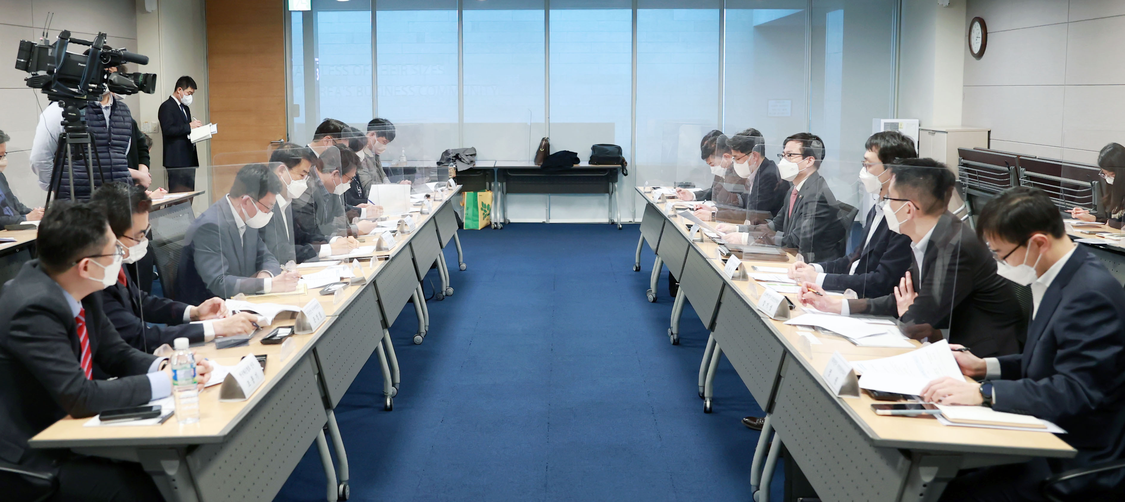 ▲우크라 사태로 수출입 물류 애로가 발생하자 정부가 지원방안을 발표했다. 수출입기업 신규 공급처 확보 관련 국적 선박 운항 지원과 대체 투입 항로·노선 발굴, 러시아·우크라이나행 운항 관련 현지 물류와 국내외 통관 애로 해소 등이 그 내용에 포함됐다. 사진은 3월 10일 서울 대한상의 소회의실에서 수출입 물류 비상대응 TF 5차 회의가 열린 모습.(사진=산업통상자원부 제공)